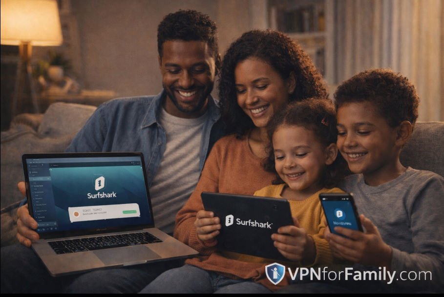 Surfshark allows unlimited devices, making it perfect for families with multiple phones, laptops, and smart TVs.